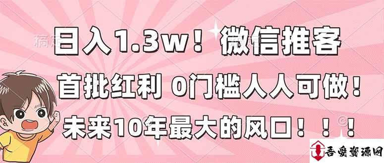 微信推客是微信推出的分享功能。简单来说,给微信小店推广的人就叫推客!客户通过你分享的链接进行了购买,就能获得商家给的推广佣金。微信存在很多年了,但是到2025年5月14号腾讯才正式对外官宣成立微信电商部门,微信电商正式启动。多年前以淘宝为首的传统电商时代,就有很多隐形的富豪通过分享淘宝的优惠商品到自己的微信,赚得盆满钵满。错过了淘宝,美团,滴滴,抖音的分享,当下微信小店电商是腾讯的核心战略方向,我们推客平台也刚刚启动第三天,就已经有日入几千甚至五位数的推客了。目前是超级大风口,当全民带货风口或趋势来临的时候,是所有人创业的大好机会!
