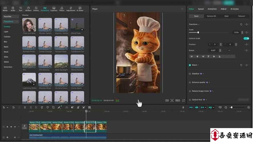 在Veo中组装您的猫冒险视频。