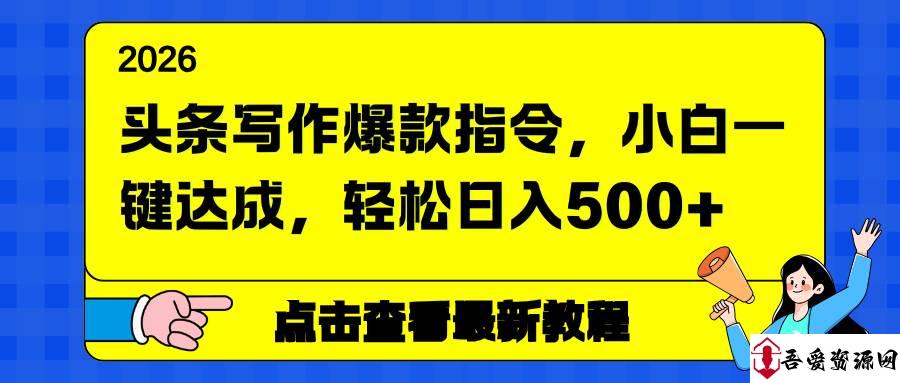 项目介绍:这是一个专为头条写作小白设计,依托实战爆款指令模板,一键套用+简单修改,即可快速产出符合平台算法的高流量内容,覆盖多热门赛道。配套选题、优化、变现全指引,每天1-2小时,通过广告分成、带货等渠道,轻松实现日入500+,适合各类想副业增收的人群。
