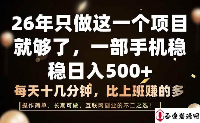 吾爱资源网 网赚项目 (17319期)26年只做这一个项目,一部手机,每天十几分钟,轻松日入500+ https://www.52ziyuan.cc/9727.html