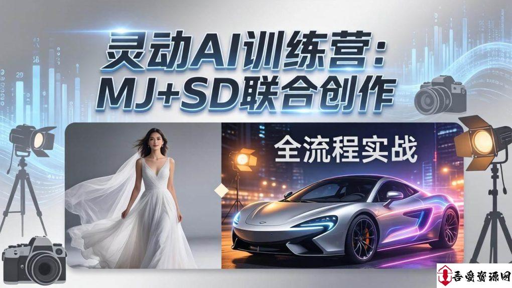 本课程是刘杨灵动AI训练营第三期,系统讲解AI与摄影后期结合的实战经验。课程涵盖**Midjourney基础操作**(界面设置、文生图、垫图换件)、**SD云端部署与使用**(图片细节增强、放大修复、光影调整、人物换装)、**MJ+SD联合创作**(匹配背景素材创作婚纱写真大片、服装创意大片、时尚杂志大片)、**静物摄影AI辅助**(制作场景道具)、**AI模拟秀场走秀大片**、**AI汽车广告合成大片**等。通过12节系统课,帮助学员掌握AI工具在摄影后期中的全流程应用,提升创意策划与合成效率。